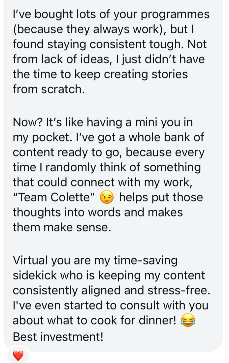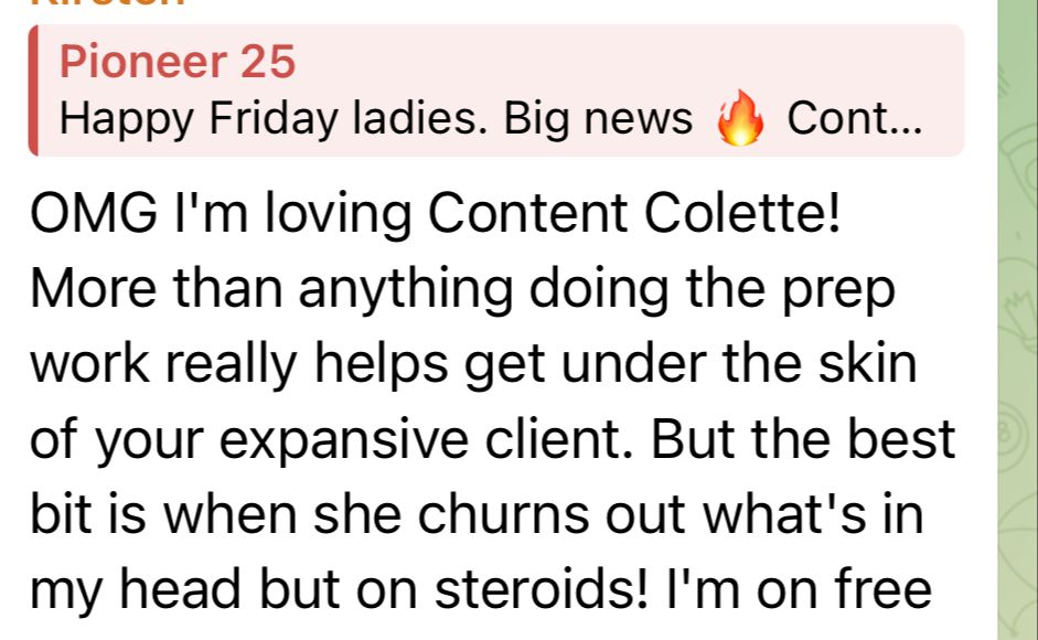 'I got a $1500 pay in full from the DMs for the first time ever from the second post Content Colette helped me create.'